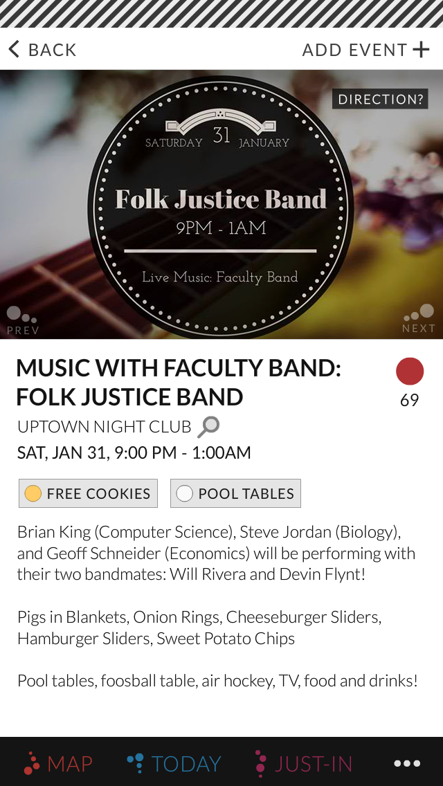 In 2015, I was asked to design Vega, an app created to help people keeping track of events around where they live. The app offers a multitude of functionality, such as tracking where the events are, filter different kinds of events or add an event to the database.